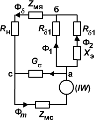 Составим схему замещения магнитной цепи с учетом влияния потерь в стали и экрана