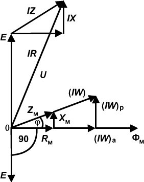 активное сопротивление R соизмеримо с индуктивным X и даже больше его. Поэтому, с учетом активногосопротивления обмотки магнитный поток будет равен