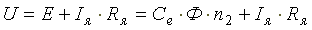 На рис. 2 показана схема замещения якорной обмотки двигателя. ЭДС направлена встречно току якоря. В соответствии со вторым законом Кирхгофа