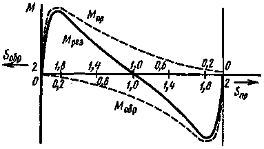 Электромагнитные моменты М пр и М обр, образуемые прямым и обратным полями, направлены в противоположные стороны, а результирующий момент однофазного двигателя М рез равен разности моментов при одной и той же частоте вращения ротора.