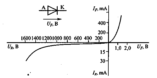 Условное графическое обозначение полупроводникового диода и его вольт-амперная характеристика приведены на рис. 6.1.