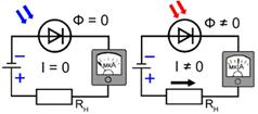 При освещении р-п перехода происходит разрыв ковалентных связей образовавшиеся неосновные носители {глава 1.5.1} втягиваются переходом В слоях возрастает количество основных носителей (в р-слое - дырок, в п-слое - электронов), что создает разность потенциалов между слоями, зависящую от освещенности перехода(рис 1-29).