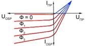 Если в цепь фотодиода включить источник ЭДС в обратном направлении (рис1-30), то при освещении возрастает количество носителей и обратный ток возрастает пропорционально величине светового потока Ф.Возникающий ток почти не зависит от величины приложенного напряжения(рис 1-31).