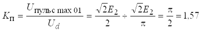 Iaср=Id/2; Uобрmax=√2·E2; Kп=0,66