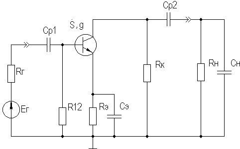 Рисунок 2.13. Схема каскада с ОЭ в области СЧ