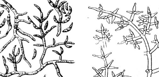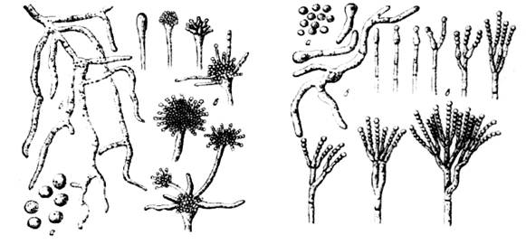 1 – Mucor; 2 – Rhizopus; 3 – Aspergillus; 4 – Penicillium; 5 – Fuszarium; 6 – Trichoderma.