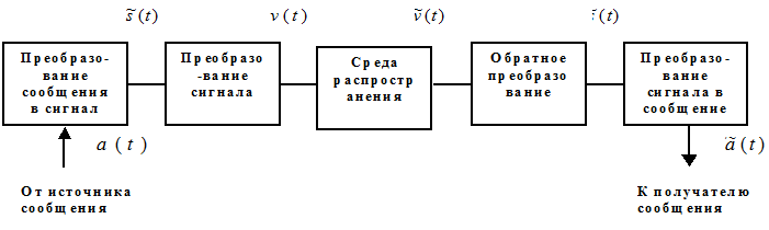 Источник сообщения формирует сообщение a(t), которое преобразуется в электрический сигнал s(t ). В системе электросвязи происходят вторичные преобразования сигналов и они транспортируются в форме, отличной от первоначальной.