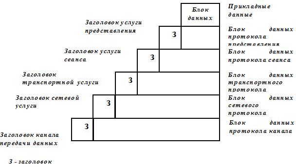 При передаче на каждом уровне блок данных принимается от вышестоящего уровня, к данным добавляется управляющая информация и блок передается нижестоящему уровню. На приемном конце каждый уровень использует только соответствующий заголовок, не просматривая остальную часть принятого блока данных. Следовательно, уровни самостоятельны и изолированы друг от друга. Это позволяет удалять и заменять протоколы и программы отдельных уровней, не затрагивая остальную часть модели.