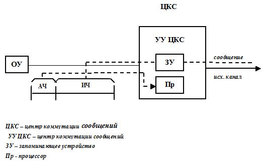 2) Представление сообщения в виде пакетов. Если разбиение на пакеты происходит в ЦКП, то дальнейшая передача пакетов осуществляется по мере их формирования, не дожидаясь окончания приема в ЦКП всего сообщения.
