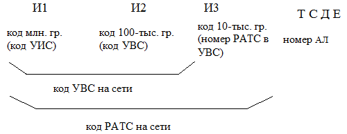 При емкости свыше 500-600 тыс. номеров даже при наличии на сети УВС количество пучков соединительных линий становится очень большим, а эффективность использования уменьшается. В этом случае территория города делится на узловые районы емкостью до 100 тыс. номеров каждый. Для установления соединений между РАТС разных узловых районов в каждом узловом районе вводят коммутационные узлы исходящих сообщений УИС, в которых объединяется исходящая нагрузка станций других узловых районов, и распределяется по направлениям к УВС своего узлового района (максимально 10 УВС в узловом районе) (рисунок 2.5).