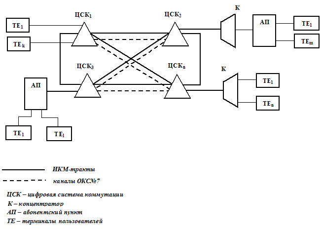· широкое использование выносных концентраторов (часть аппаратно-программных средств ЦСК, приближенных к местам группирования пользователей), что позволяет строить более гибкую сеть, сокращает протяженность абонентских линий и уменьшает затраты на управление и обслуживание