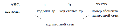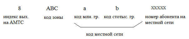 14 Какую структуру имеет номер абонента при внутризоновой связи?