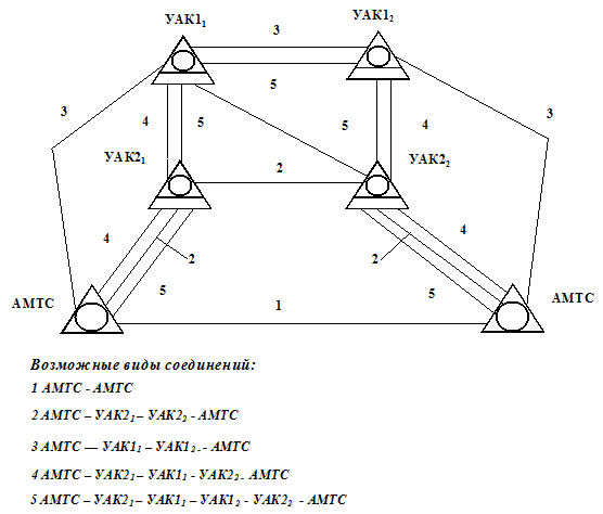 Рисунок 2.9 – Виды соединений на междугородной телефонной сети
