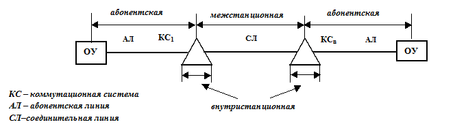 1) абонентская – на участке между оконечным устройством и коммутационной системой;