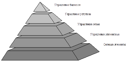 Для решения задачи разработки и внедрения системы управления телекоммуникациями Международный союз электросвязи (МСЭ) рекомендует использовать концепцию TMN - модели (Telecommunications Management Network), являющейся способом логического описания системы (сети) управления телекоммуникациями. Данная концепция предполагает многоуровневую иерархическую структуру управления телекоммуникациями (рисунок 11.8).