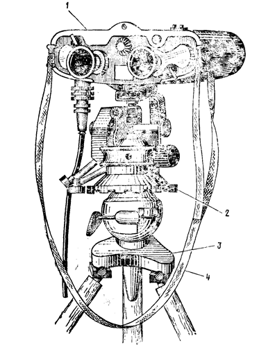 /—дальномер; 2— угломерное устройство; 3 — тренога; 4 — шеПны» ремень