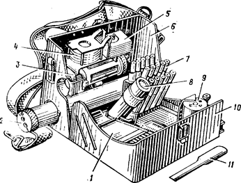 /--патроны к грелке; в—фонарь; 9 — грелка: /О—крышка; //—лопатка