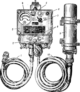 4— микроаупсрметр: 5 —лампа подср"та; 6— лампа световой индикации; /—переключатель; 8 — предохранители; 9— выносной блок;
