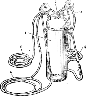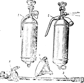 /—резервуар:.?—спгЬон: Я— прелпхр^пгтгльныД кла^ пан; 4— жидкостный шланг: 5— воздушный шланг
