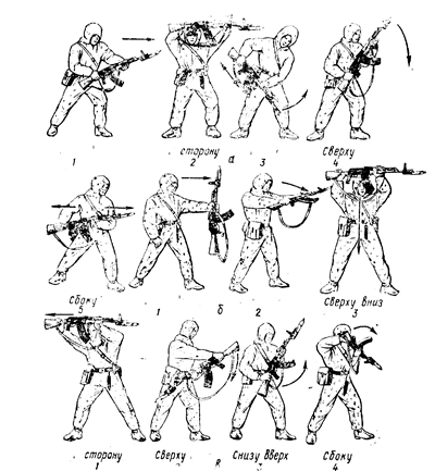 В сторону сверху Вниз ^ Сниз^ерх С5^ Рис, 111. Удары автоматом:
