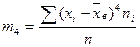- центральный эмпирический момент четвертого порядка. Он вычисляется либо по определению