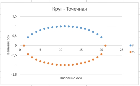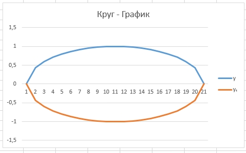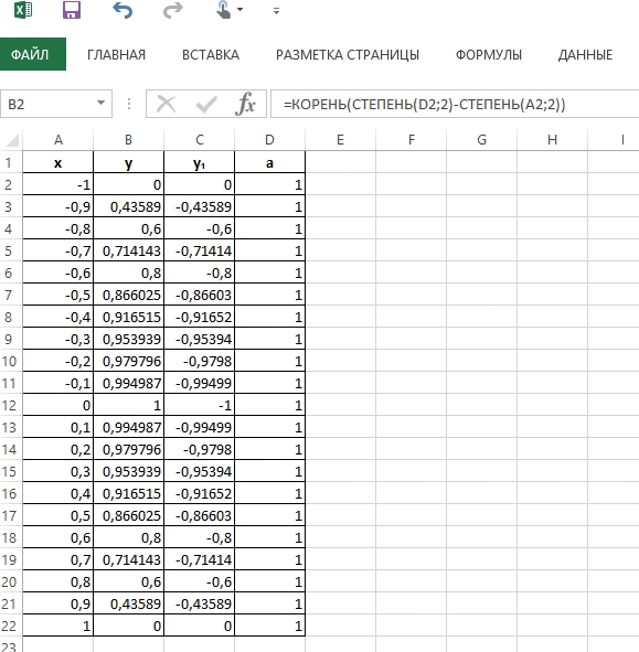 Круг строиться по формуле x2 + y2 = a2, где a – радиус круга. Дальше строим таблицу на основе этой формулы. Она показана на рисунке 13.