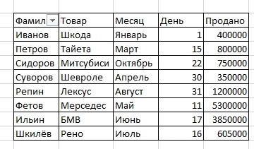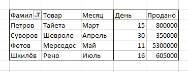 Рисунок 17 Таблица со значком фильтра в нужном столбце