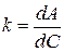 Чувствительность метода оценивают по крутизне зависимости в координатах «аналитический сигнал – концентрация определяемого вещества». Первую производную аналитического сигнала А по концентрации называют коэффициентом чувствительности k (или чувствительностью):