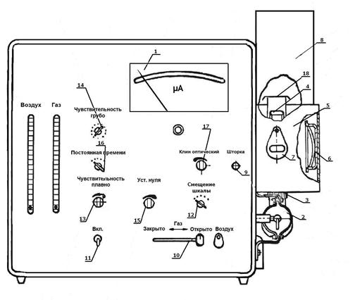 Рис. 1.2. Передняя панель пламенного фотометра ПАЖ-1