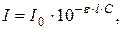 где I, Io – соответственно интенсивность проходящего через вещество (раствор) и падающего на него света; ε – молярный коэффициент поглощения света (равен оптической плотности одномолярного раствора при толщине слоя 1 см); l – толщина слоя раствора, поглощающего свет, см; C – молярная концентрация раствора, моль/дм3.