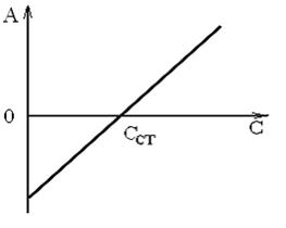 Закон Бугера для оптической плотности представляет собой уравнение прямой, выходящей из нуля в координатах А – С: