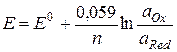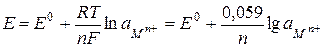 Уравнение Нернста для электродного потенциала: