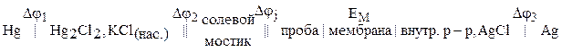 гдe Δφ0 – потенциал электрода сравнения, не зависящий от концентрации определяемого иона; Δφj – потенциал жидкостного соединения; ΔφM – мембранный потенциал EM.