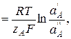 – активность иона А во внутреннем растворе;