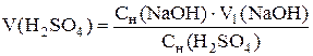 Из трех параллельных определений находят среднее значение экви-валентного объема раствора гидроксида натрия