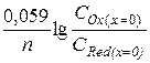где СOx и СRed – концентрации соответственно окисленной и восстанов-ленной форм у поверхности электрода (х = 0).