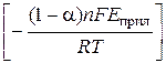 Это уравнение получило название уравнения Фольмера – Батлера. Из него следует, что ток в данной области изменяется экспоненциально с изменением Е прил из-за того, что скорость электродной реакции меньше скорости диффузии определяемого вещества.