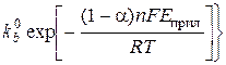 где k 0 – константа скорости, измеренная при Е прил = 0, т.е. константа ско-рости соответствующей химической реакции; α – множитель, отвечающий доле электродного потенциала, дающего вклад в соответствующую хими-ческую реакцию.