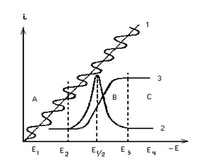 переменнотоковая (2) и постояннотоковая (3) полярограммы