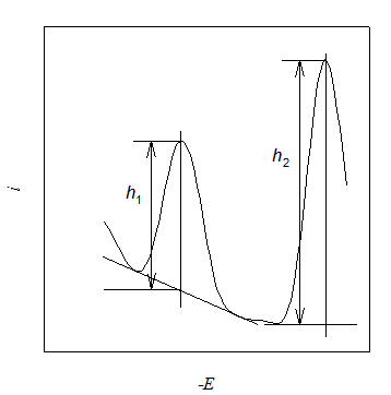 Рис. 2.27. Переменнотоковая полярограмма и измерение высот пиков