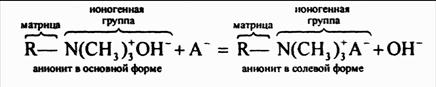 где К+ – связанный катион ионогенной группы; А– – обменивающийся анион.