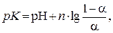 где рК – отрицательный десятичный логарифм кажущейся константы дис-социации ионита; n – постоянная, характеризующая степень структуриро-вания полимера; α – степень диссоциации ионогенных групп.