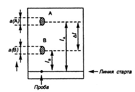 где Rf = l / L; Rf (ст)= l ст / L; l ст – расстояние от линии старта до центра пятна стандарта (см. рис. 3.3).