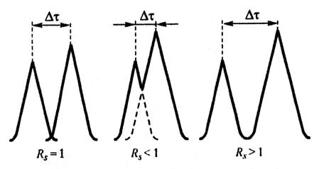 Если RS < 1, то разделение двух веществ неполное. При RS > 1 наблюдается полное разделение двух компонентов смеси (рис. 3.7).