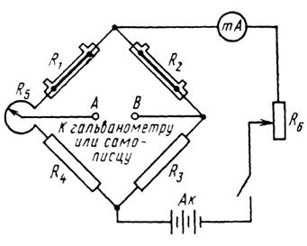 2. Включить общий тумблер питания под крышкой термостата IV, а также тумблеры питания блоков II, III и самописца V (движение ленты не включать).
