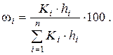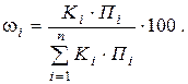 За 100% принимается сумма исправленных параметров Ki·Пi. Результат анализа (массовая доля i го компонента в пробе, %) рассчитывается по формуле