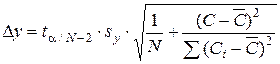 Качество калибровочной модели оценивают путем расчета доверительного интервала:
