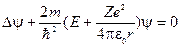 S: Стационарным уравнением Шредингера для электрона в водородоподобном атоме является уравнение: