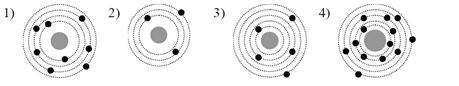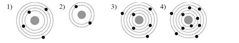 S: На рисунке изображены схемы четырех атомов. Черными точками обозначены электроны. Атому