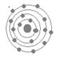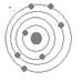 +: Ядро в центре, электроны на орбитах вращаются вокруг ядра, заряд электронов отрицателен